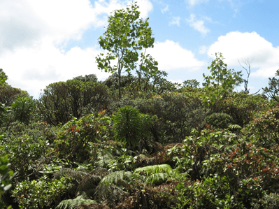 Hawaiʻi’s cloud forests are bogs are magical places that are a world apart from the lowlands of communities and beaches. Most of them still have their flora largely intact. The Nature Conservancy Ecoregional Plan website describes a Montane Wet System that includes these types of habitats and in which are designated several natural communities. They describe this system )http://www.hawaiiecoregionplan.info/MWsystem.html) as between 1,000 and 2,000 m (ca 3,000 – 6,000 ft) elevation, receiving greater than 75 inches annual precipitation, or otherwise bearing prevailingly wet substrate conditions. It includes forests, bogs, and wet shrublands on the windward and summit regions. A short description of Hawaiian bogs can also be found on this page: https://en.wikipedia.org/wiki/Hawaiian_tropical_rainforests.