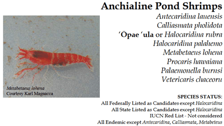 A DLNR 2015 SWAP factsheet for Anchialine pool amphipods is here: https://dlnr.hawaii.gov/wildlife/hswap/fact-sheets/.