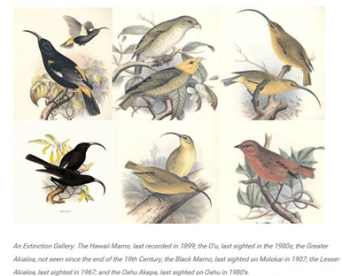 A gallery of paintings of extinct birds is shown below and obtained from the following website: https://news.mongabay.com/2011/11/aloha-and-welcome-to-the-planets-extinction-capital/.