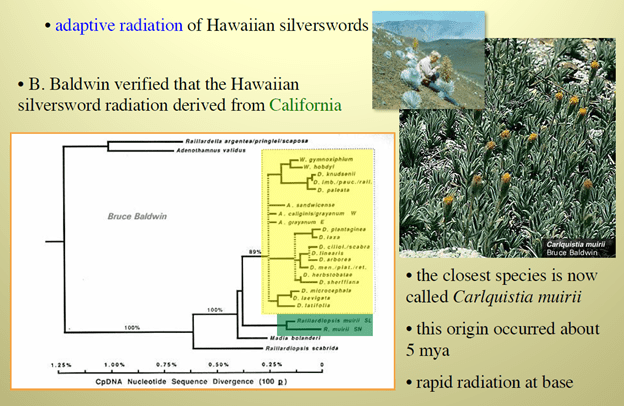 Another example are the Hawaiian silverswords. The below figure is also from the K. Systsma course.