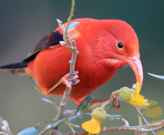 These birds are the most well-known example of Hawaiian evolution to most of the public. The bird shown above is an Iiwi (image credit: Mauiforestbirds.org). Other examples are shown below.